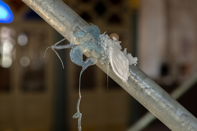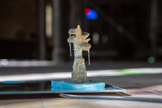 The more it descends the more the dusted light brightens the gloriole of the golden mist.What if the dust slowly leaked through the wounds cut in the nature by the mysterious knife.